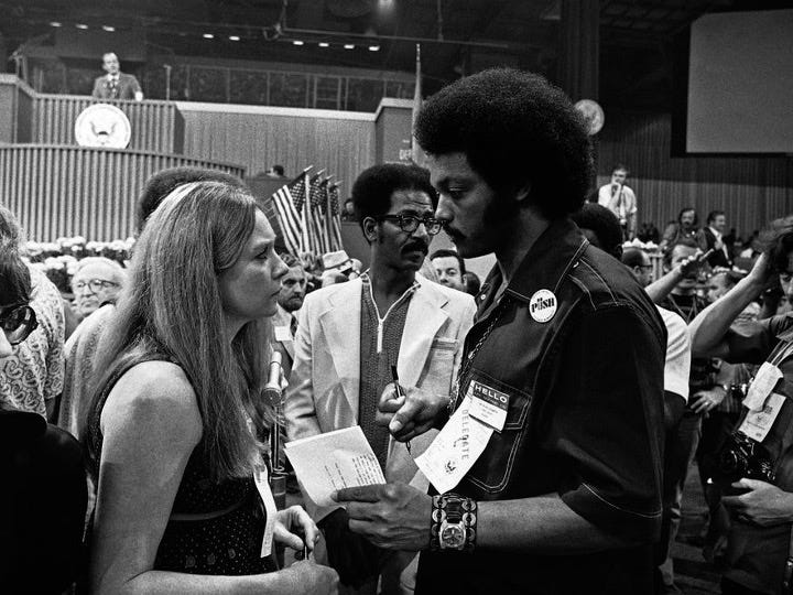 Those reforms opened up the 1972 Democratic convention in Miami to many new faces; the post-1968 reforms had created rules allowing an influx of women, young people, and people of color to state delegations. And many delegates were now pledged to presidential candidates and selected in primary elections; party leaders had a far harder time steering the nomination in directions they wanted.