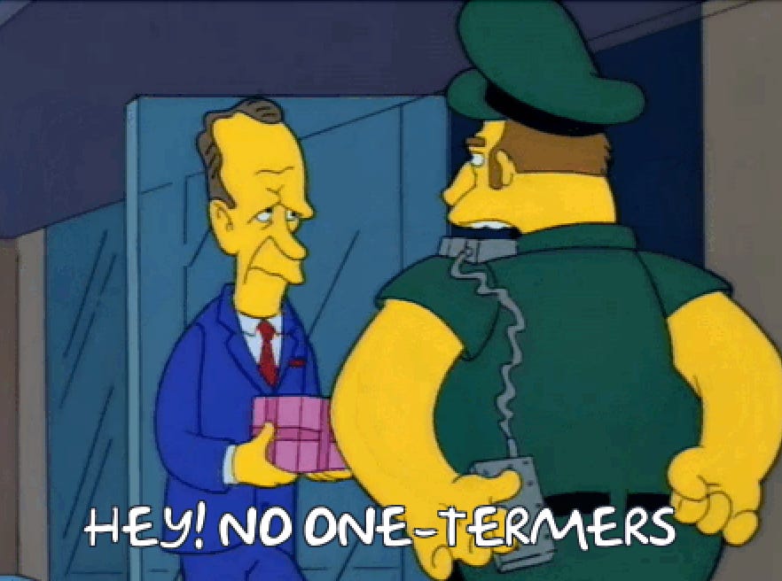 This chart also shows the impact of the Iran-Contra scandal on Reagan’s second term, with his high net approvals plummeting to near zero in 1987, although still staying far above where Bush and Nixon ended up.